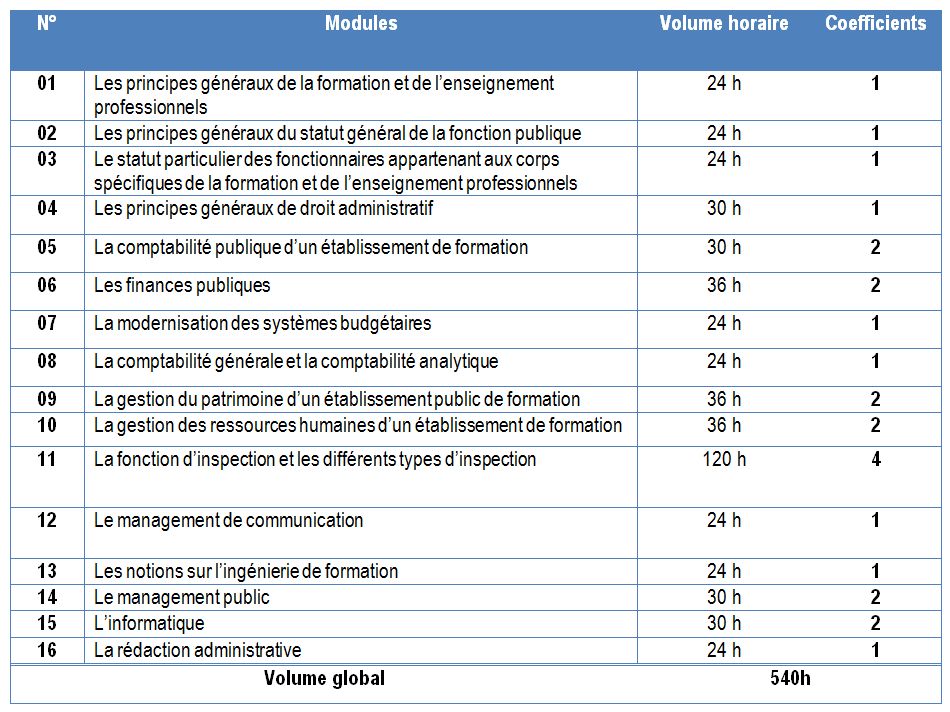 - Formation statutaire des directeurs des établissements de la formation et de l’enseignement professionnels.